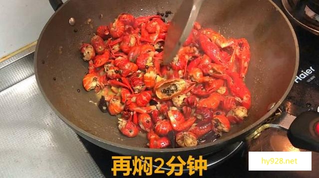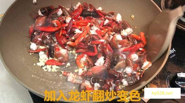 倒入小龙虾翻炒上色