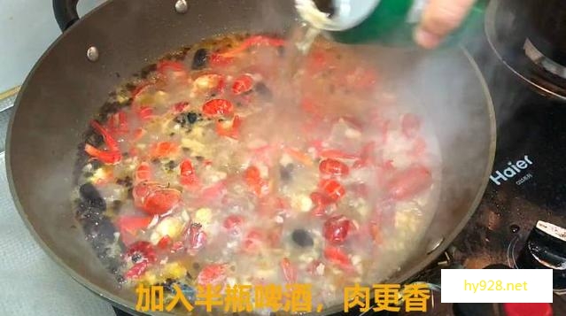 倒入清水和一瓶啤酒,没过虾