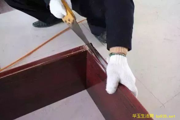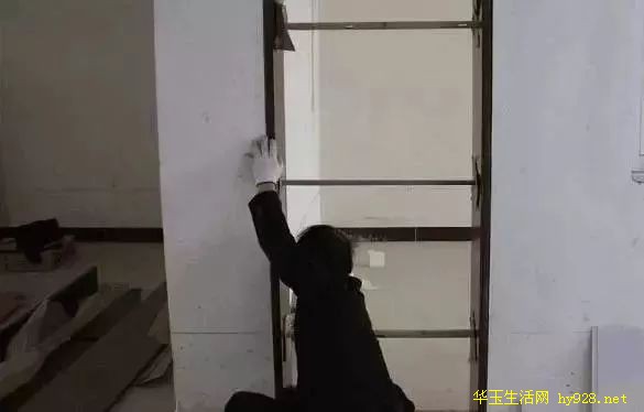 11.由于施工方原因造成墙体误差较大时,就会出现局部门套与墙体有较大间隙,这是正常的,也是必需的,没有间隙门套就不能加以调整,甚至放不进门洞,当出现较大间隙时,可用木锲加以局部固定,并用刀锯锯成与墙面持平: