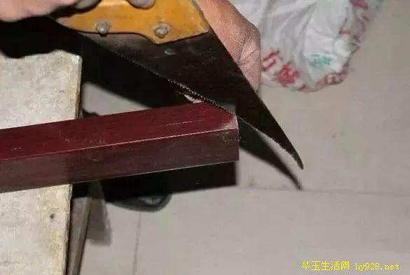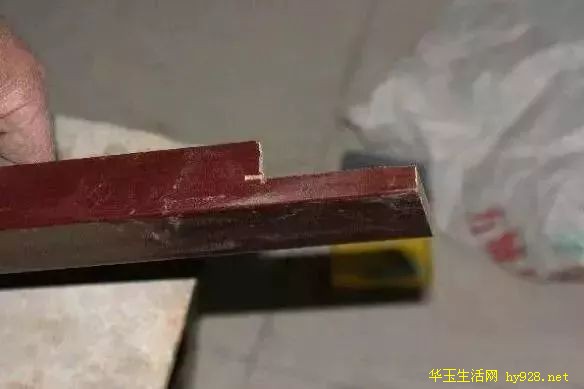 13.确定自己喜欢的风格,斜角与直角,两种效果可以自由选择,告知工人喜欢哪种效果,工人即可完成,我们重点介绍直角效果的安装方法,一般线条高出2公分的效果最佳,因此根据需要先确定露出部分尺寸,并用工具做切口: