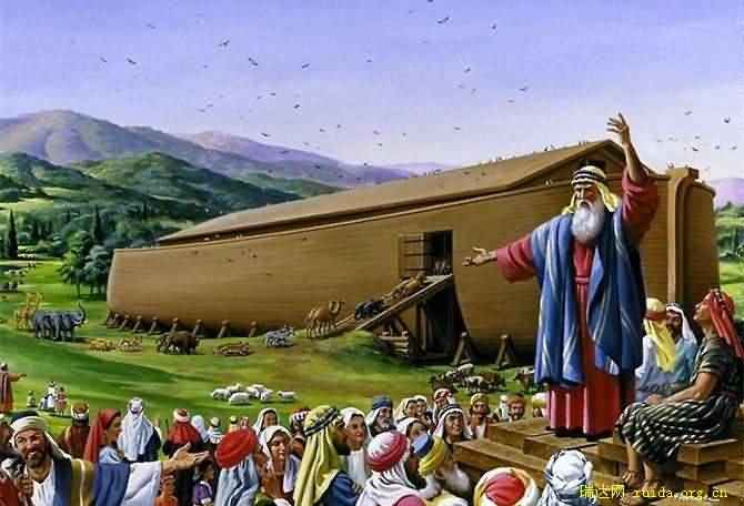 在罪孽深重的人群中,只有诺亚在上帝眼前蒙恩。上帝认为他是一个义人,很守本分;他的三个儿子在父亲的严格教育下也没有误入歧途。诺亚也常告诫周围的人们,应该赶快停止作恶,从充满罪恶的生活中摆脱出来。但人们对他的话都不以为然,继续我行我素,一味地作恶享乐。