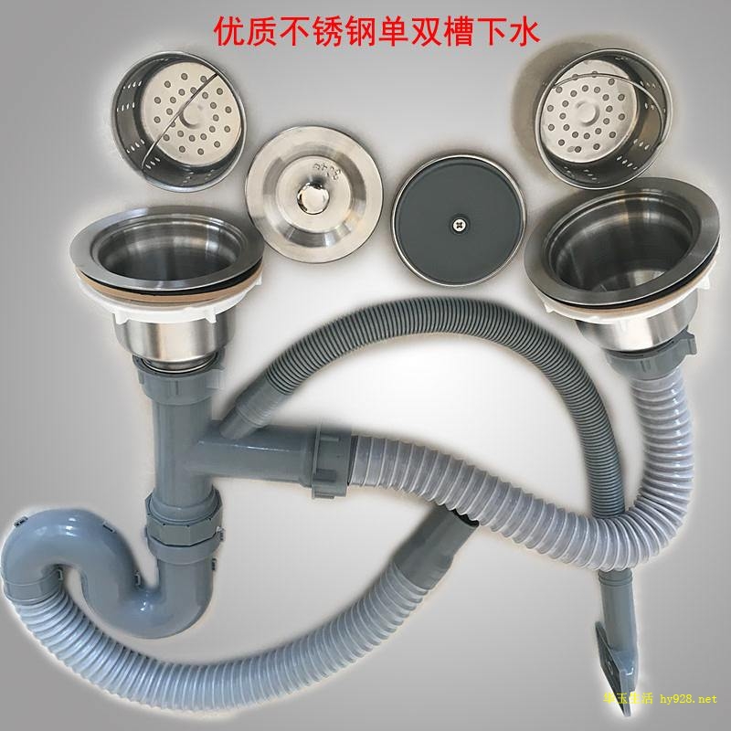 厨房单双洗菜盆多半是不锈钢盆,它使用的下水器分40和50,下水器也分不锈钢和塑料,外观有差异,但是安装方法基本差不多。