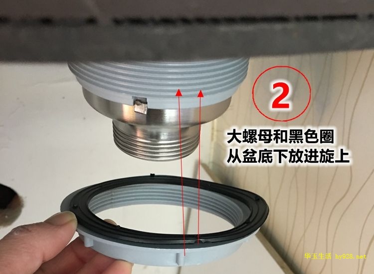 2、先安装下水器 如果是换新,先取下旧的下水器。拆解是安装的反过程,胶垫一般有两个,上面白色下面黑色一个