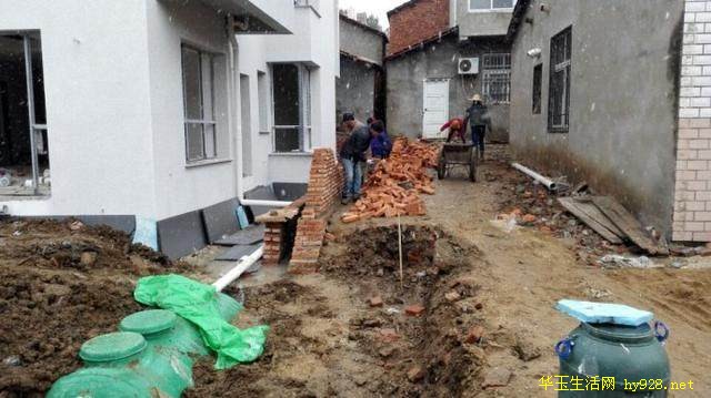 而化粪池也有两种施工方式:一种是红砖、水泥现做,另外一种是用成品的玻璃钢化粪池。