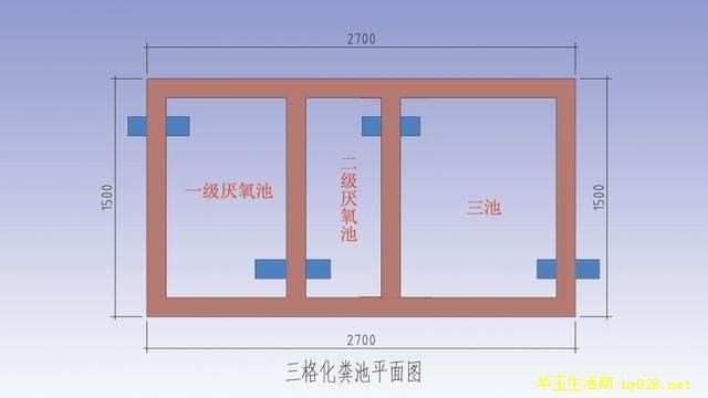 农村自建房化粪池的大小,一般是长2.7米,宽1.5米,深度为1.3米左右,“目”字结构最为实用。