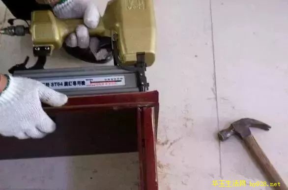 3.内径确定后,开始用钉枪固定,可选用5公分钢钉直接用枪打入: