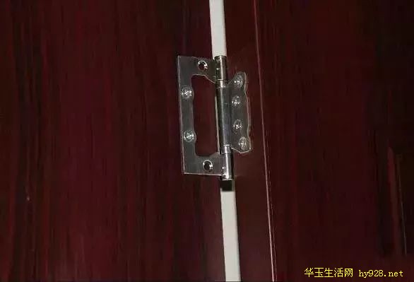 10.门板固定好后,可取下底部垫的小木板,试着将关上,调整门左右与门套的间隙,根据需要将间隙加以调整,门左右与门套的间隙就如下图,基本是一条直线,宽约3到4毫米,然后依次将连接片与门套、墙体牢牢固定好:
