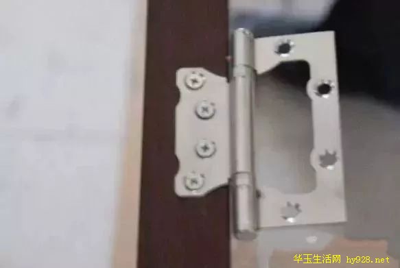 7.然后找到配好的连接片,选门套的侧面,上、中、下三点分别打上连接片,请注意连接片可直接固定在门套的侧面,厚3.2公分的门套有足够的握钉力,完全可以承重,保证连接片将门套与墙体紧紧引连,甚至不用发泡胶粘连: