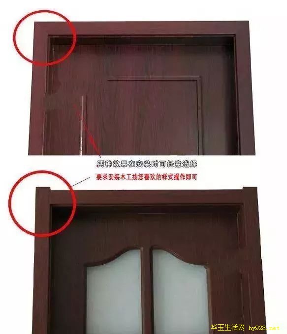 5.请注意门套的正反两面均须开贯通槽,开好后,由两人抬起,将门套放入门洞: