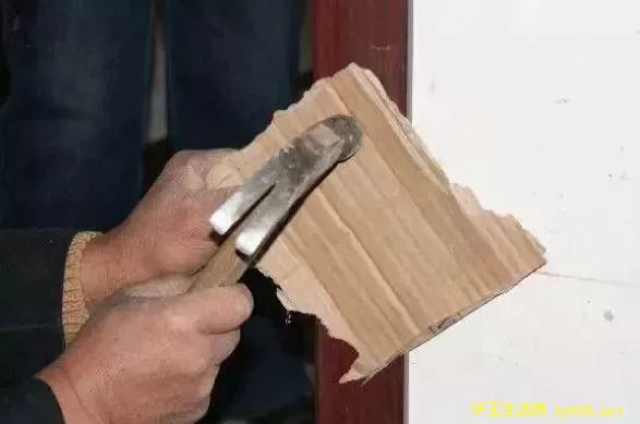 11.由于施工方原因造成墙体误差较大时,就会出现局部门套与墙体有较大间隙,这是正常的,也是必需的,没有间隙门套就不能加以调整,甚至放不进门洞,当出现较大间隙时,可用木锲加以局部固定,并用刀锯锯成与墙面持平: