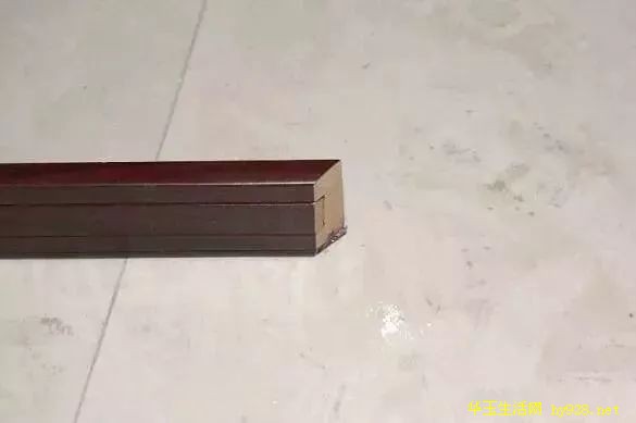 放入门洞也同样要经过校正方可固定并使用,先根据门的宽度截三根木条,比如门宽80公分,木条的宽度应该是80.8公分,取门套的上、中、下三点,将木条撑起,请注意木条的两端应垫上柔软的纸,防止校正的过程中划伤门套表面: