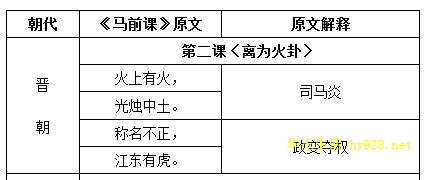 这一课卦象上下皆为离卦!“火上有火”就是“炎”字 爻辞有“黄离”。所以说‘光烛中土’、卦辞“畜牝牛”。“牝”在此为母马,因之指晋朝“司马炎”“ 称名不正”,初九爻辞“履错然”,好像会踏到虎尾,就多多了一句“ 江东有虎”。