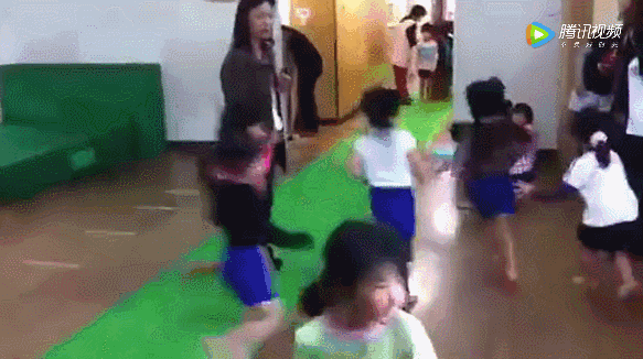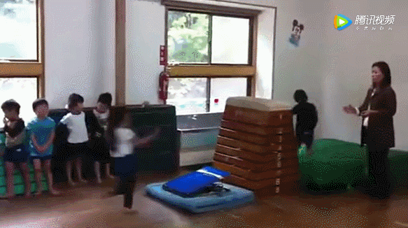 小朋友一个个生龙活虎,跑动翻滚,一切井然有序。