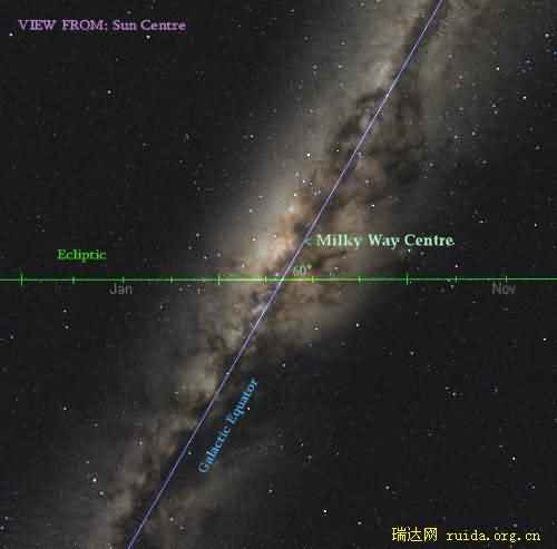好了现在有意思的事情开场了。为了在玛雅历结束的时候找到一些“绝世天劫”的原料,不少人开始了踅摸。第一个撞上枪口的是,每年的6月和12月从地球上看太阳会从银道面前方经过。