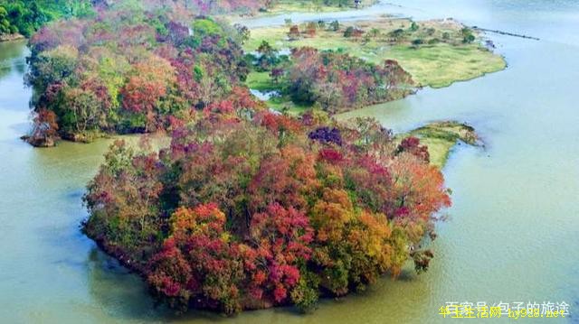 一个人静静站立在江边,水中树与倒影相映成趣,远望乌桕林似一抹火红的晚霞漂浮在江洲之上,一念之间,关关雎鸠,在河之洲,秋之乌桕,红墨倾之。参差乌桕 ,寤寐思之,携一古筝,琴瑟乐之。悠悠琴鸣,愿闻其详