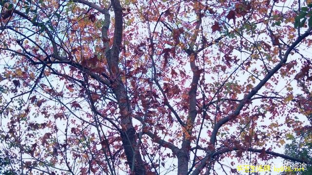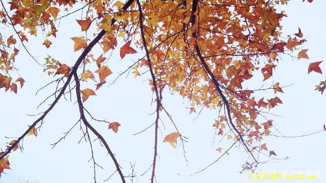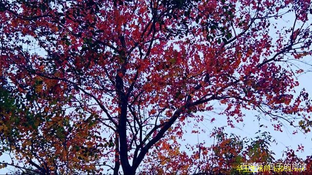 仰视仰拍,蓝天白云与乌桕的火红,冰与火之歌,干净和洒脱沁入心脾。同行的小哥哥介绍道,乌桕生长多独木临水,树叶小巧,细碎清雅,不喜热闹也不热情的样子,淡泊如江南渔夫独行于江波上,无声无息,又如一个孤芳自赏的女子,片片红叶落相思