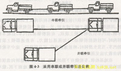 采用串-联或并联牵引法自救见图4-3.