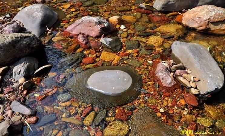 灉江里的石头是五颜六色颜色的,可能是灉江源头有矿石,已经知道的就有“苗脊”铁矿 ,八圳有一开采的矿洞。