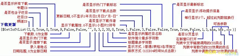 标签名:{$GetSoftList(参数列表)}