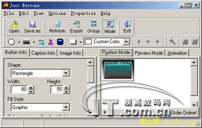 “Just Button”是个傻瓜型的按钮制作工具,你没有必要有丰富的专业知识,软能让你选择各式各样的按钮颜色和式样,你只要简单的加入按钮上面的文件就行了。(图4)