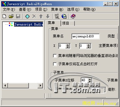 “RadialWipeMenu”是一个专业级的网页导航条滑动菜单制作工具。通过它,即使你不懂JAVA SCRIPT 语言,你也可以很轻松的做出很好看的网页导航菜单。你可以随意更改导航菜单的大小,颜色,超链接,做出来的导航条保证让你美不胜收。(图5)