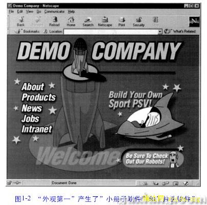 建立Web站点是很困难的。尽管一些核心技术如H T M L很容易掌握,但开发者仍会犯很多错误。这主要是由于开发者经验的欠缺,进程的混乱以及不现实的时间安排所导致的。因为时间的限制和缺乏经验,开发者经常走极端,不考虑后继步骤,而企图一步到位,直接实现。例如,一些Web专业人员直接从外观开始建设站点。用可视化设计工具试着做页面,然后才考虑下一步,结果造成设计的页面五彩斑斓,看起来就像精美的小册子。当今一些注重外观效果的站点经常完全用Macromedia Flash来开发,其效果就象播放一些电影片头却不介绍电影一样。这种做法除了能展示创造者外观设计方面的技艺外,对站点目标的实现全无帮助。对于那些著名的站点来说,这或许正是其意图,但对其他类型的站点又怎样呢?首先考虑外观效果的那些站点经常难以更新,除了令人眩目的效果外,没有什么主要的技术,缺乏功能,并且下载的速度极慢。很多人把这种站点称为小册子软件( b r o c h u r e w a r e )或片头软件( i n t r o w a r e ) ,这主要是因为这些站点的功能并不比那些小册子、娱乐软件或电影介绍丰富。这种站点的例子如图1 - 2所示。