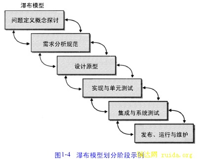 图1 - 4是一个瀑布模型划分阶段的例子。