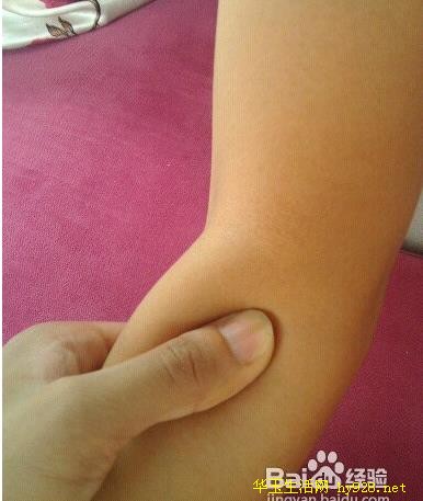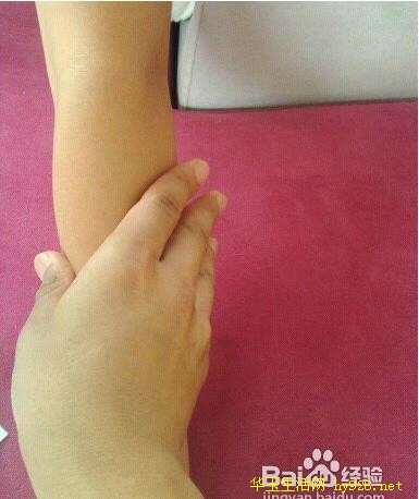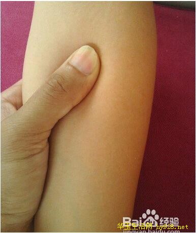 7、肘髎,手指弯曲时有皱纹产生处,用拇指向内用力,位于骨头边缘处。