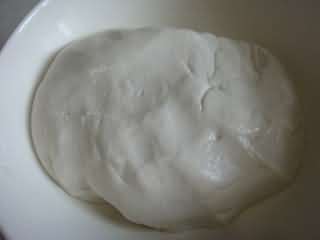 筛入糯米粉和泡打粉,加1勺油和适量温水,拌匀后和成光滑的面团。