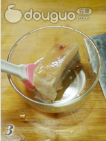 12. 如图一片芋头,一片五花肉皮向下的码放到大碗里。