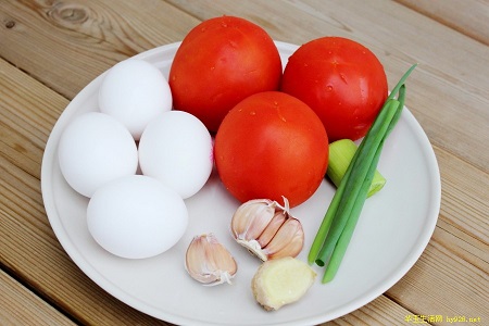 材料:鸡蛋4个、西红柿500克、姜10克、大蒜5瓣、葱1根