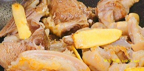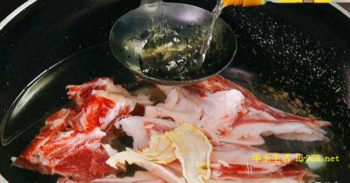 热锅凉油下锅,放入几片姜炒香,下入羊排翻炒,炒香一点膻味会更少,再放入十粒胡椒,倒入适量高度白酒,再翻炒至酒精挥发,加入没过羊排的清水烧开。