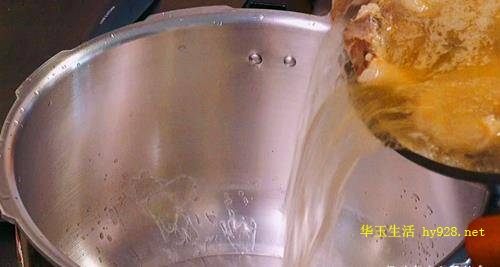 烧开后倒入高压锅,再放入一小块当归,两粒手指大小的冰糖,盖上锅盖用中小火煮二十分钟左右,要是老羊就煮久一点,这个还是要按自己要求煮。