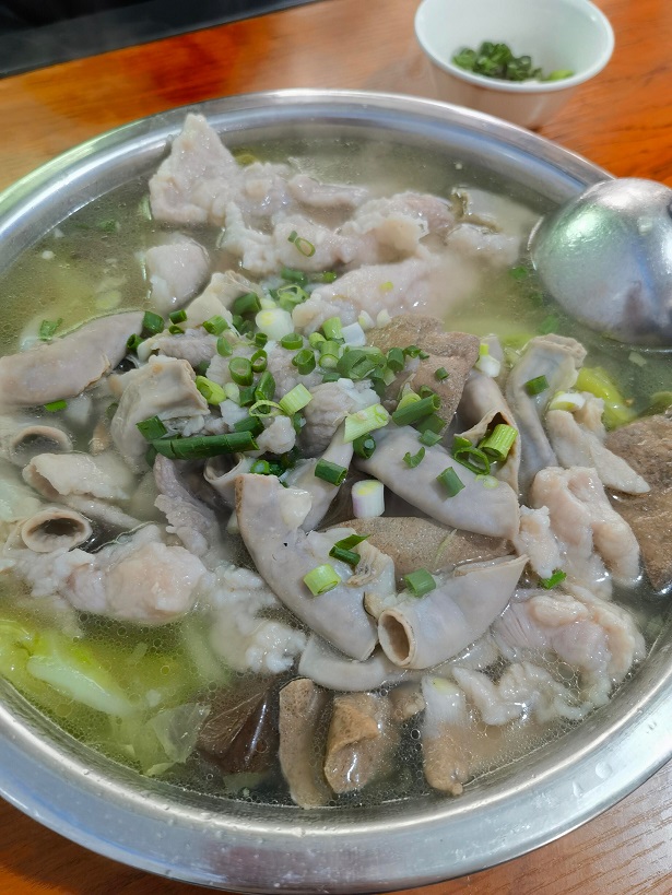 辅料:干黄花、小木耳、莲白、葱花、筒子骨、老母鸡